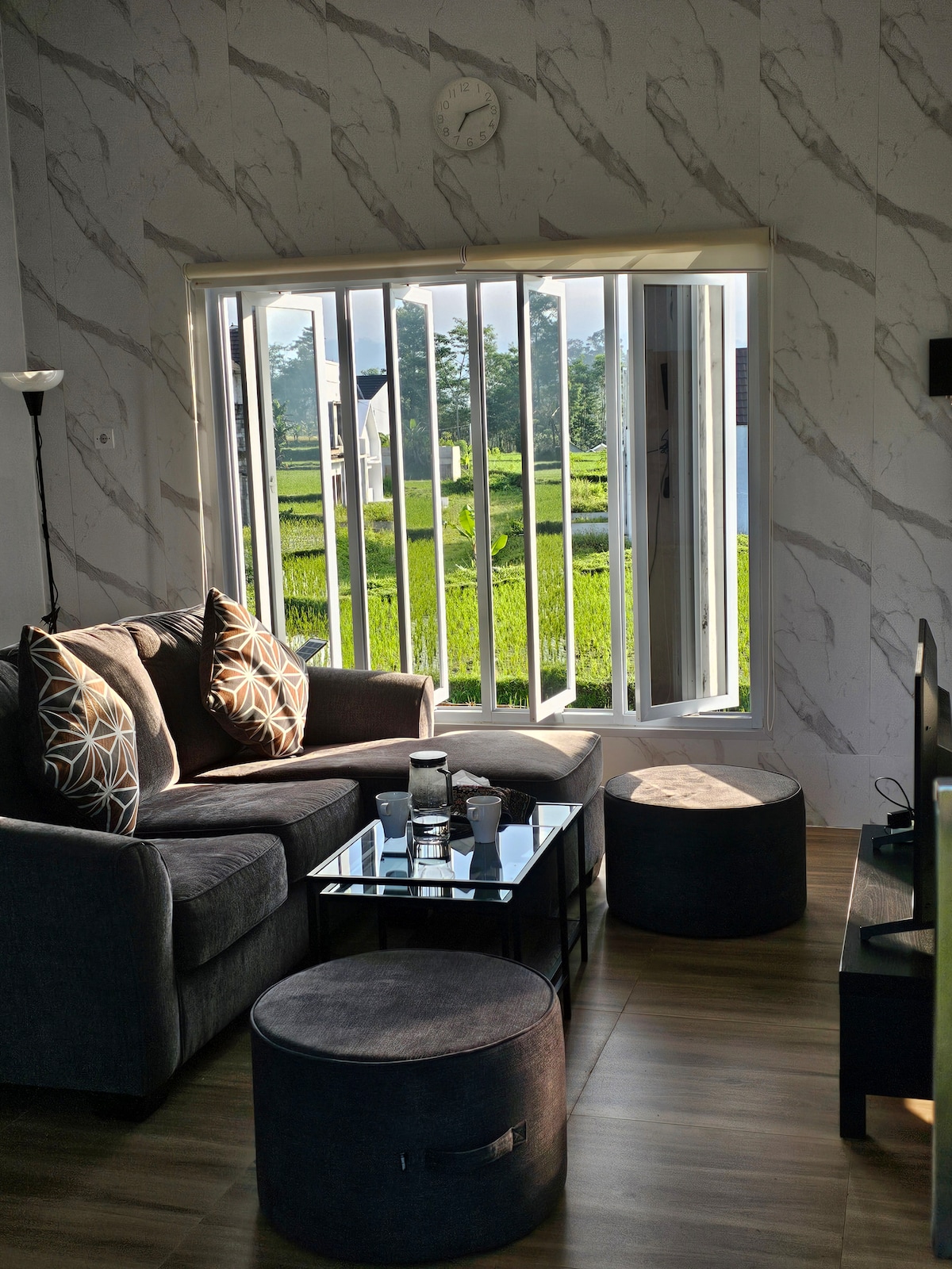 Vila super nyaman utk keluarga, lengkap dgn dapur & dining room. Nyaman ber6 dengan 4beds & 2 bathroom. Akses mobil masuk ke depan vila, parkir mobil cukup luas. 3 teras & balkon utk menikmati udara sejuk di 1500mdpl, relaxing & quality time bersama keluarga. Menikmati golden sunrise dari balkon atau teras depan.