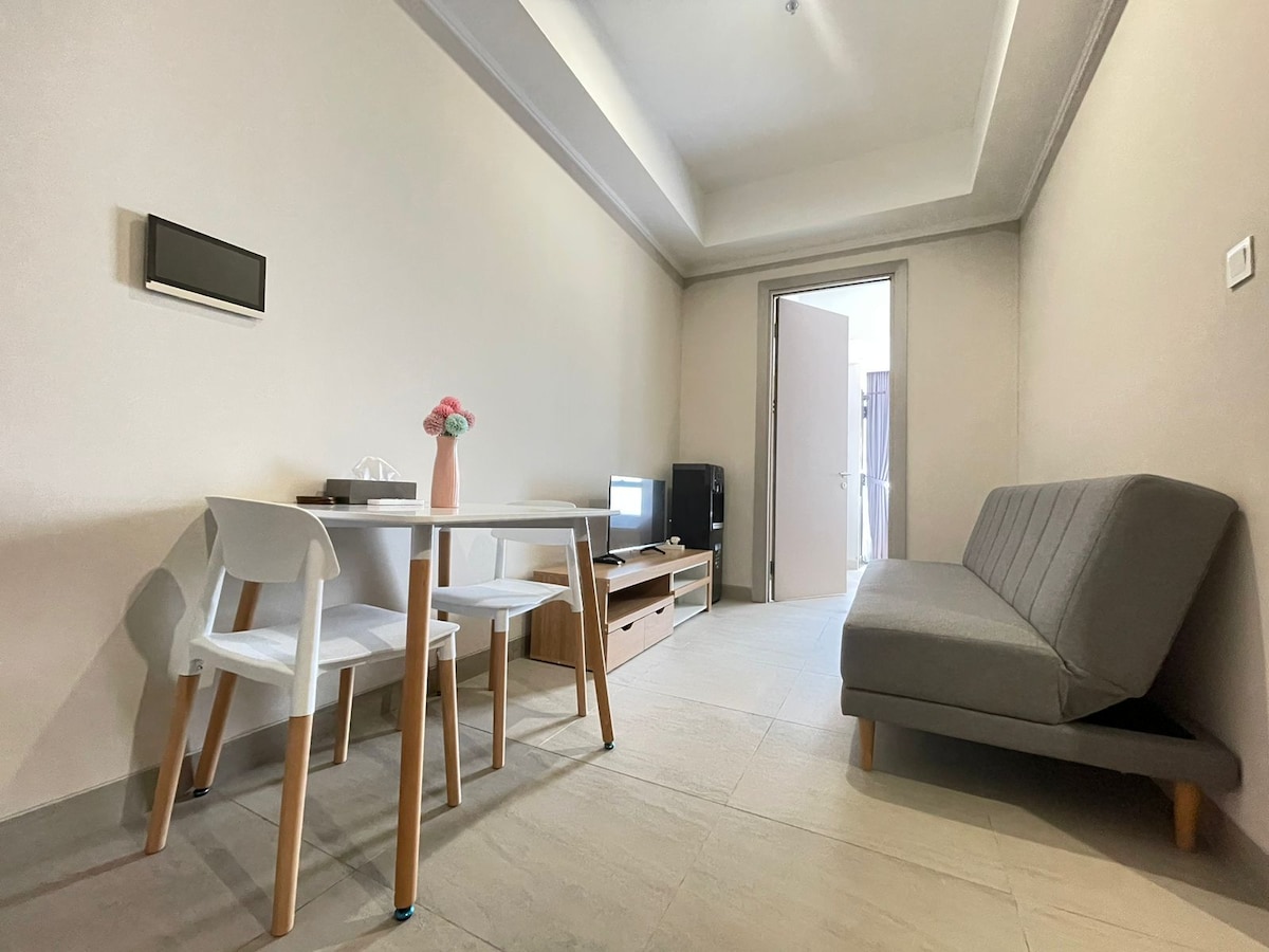 Modern & cozy 1-bedroom apartment located in the heart of Kemayoran, just minutes away from JIExpo and JIS. This 33 sqm unit is fully furnished and thoughtfully designed for comfort and convenience. It features a bright living area, a functional kitchen, a clean bathroom, and a comfortable bedroom. Ideal for professionals or couples looking for a strategic location with easy access to public transportation, shopping centers, and dining spots.