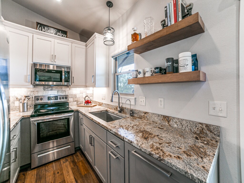 Located in the Historic Train Depot Compound, this charming one bedroom apartment is perfectly situated in downtown Kerrville - right next door to top rated Rails restaurant, the Sweeter Side of Rails Bakery and Candy Store, and steps away from great breakfast tacos, Kerrville's craft beer breweries, lovely green houses, and the convenience of Walgreen's. Join us for dinner on the patio or enjoy free delivery of room service from Rails restaurant.