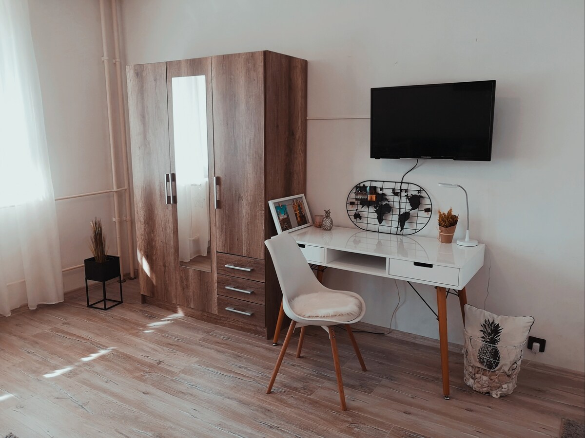 Our modern, youthful accommodation is a comfy place in the city center of Pécs, only 100 meters far from Király street. The first-floor apartment is equipped with wide range of amenities (e.g. Netflix, wifi, Nespresso coffee machine) and a perfect accommodation up to 4 people, with magnificent view of the Mecsek Hill. Enjoy the benefits of the apartment, I promise you will not be disappointed!