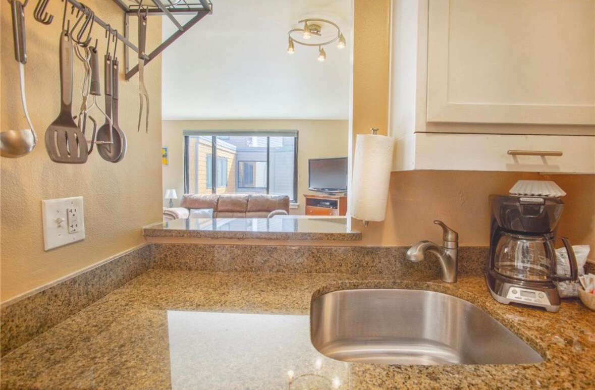 Welcome to our light and bright 1 bedroom condo in the heart of River Run Village(Keystone Mountain)! Skip the shuttles to the lifts as this condo is a 3 minute walk to the gondola! This condo sleeps four and features a private one bedroom with king bed as well as an updated unit with granite countertops. Enjoy your favorite beverage while soaking up the sun and spectacular views of the slopes while either inside heated by the fire, or outside on your own private balcony.
