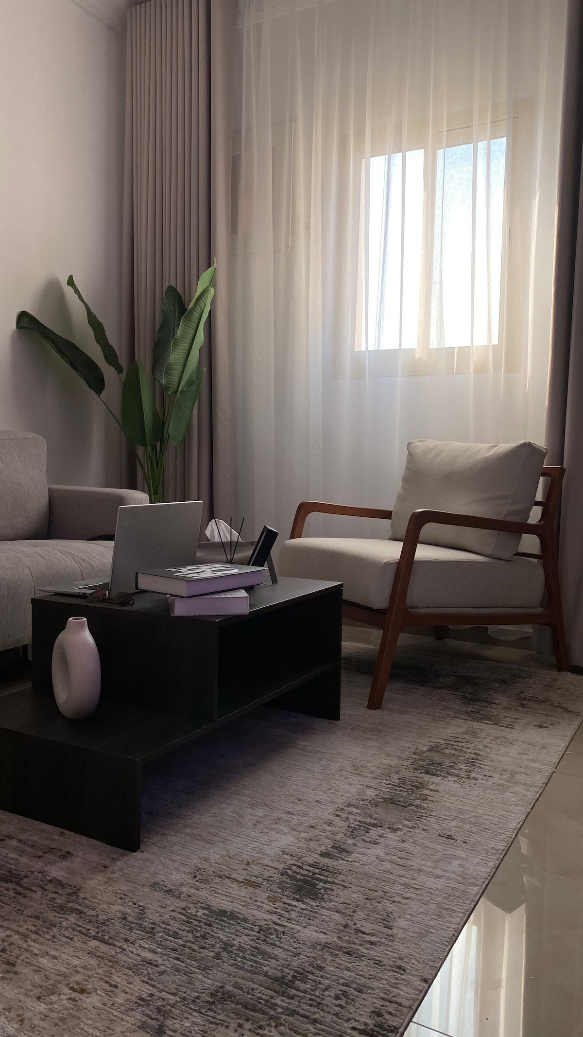 يتميز مكان الإقامة بتصميمه العصري الدافئ الذي يجمع بين البساطة والفخامة في آن واحد تطل النوافذ الكبيرة على منظر هادئ يضيف لمسة طبيعية منعشة، بينما توفر الستائر السميكة خصوصية تامة عند الحاجة. الغرف مزودة بجميع وسائل الراحة الأساسية، ومنطقة الجلوس أنيقة مثالية للقراءة أو الاسترخاء أما الحمام، فهو مصمم بأسلوب راقٍ، مزود بتجهيزات ولمسات فندقية تضمن تجربة مريحة. تتميز المساحة بنظافتها الفائقة وتنظيمها العملي، مما يجعل الإقامة تجربة هادئة تمنح الضيوف شعورًا بالاستجمام والرفاهي