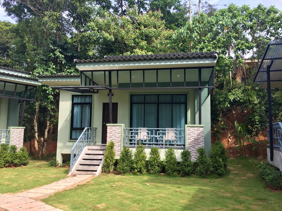 46m2 single bed room bungalow The Bungalows is located on the upper side from the main road in Khuk kak. The bungalows are approximately 3 km from the beach. It is located in a peaceful and quite area, close to the river and you will be viewing of the jungle from the bungalows porch as you wake up in the morning. All bungalows have AC in the bed room, hot water, fans, kitchen,WiFi by fiber broadband and swimmingpool