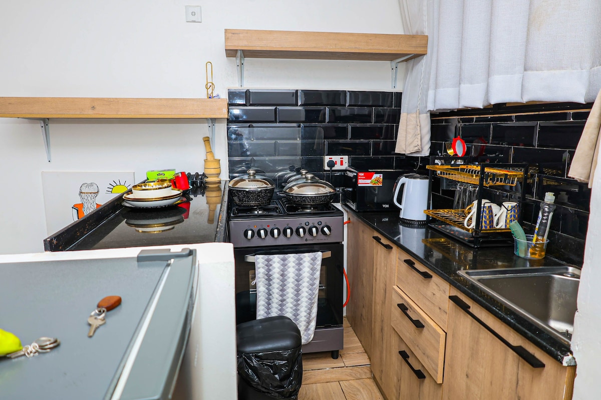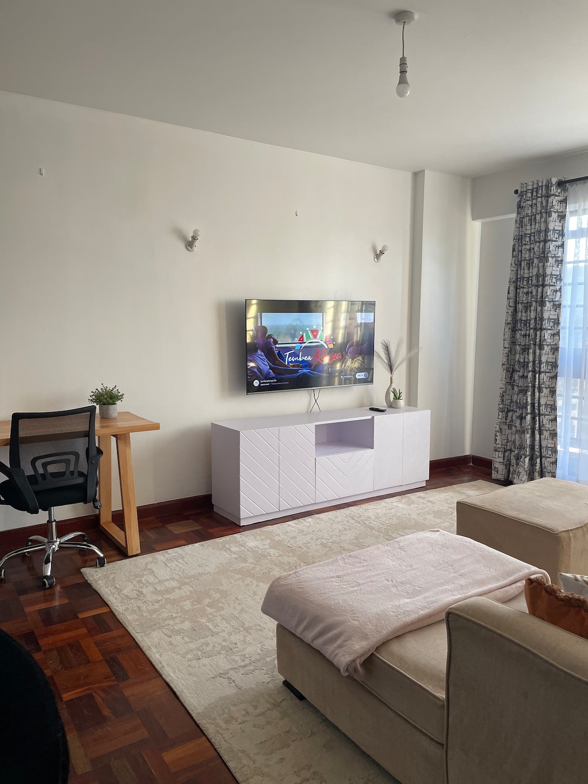 🏡 Welcome to your stylish 1-bedroom executive apartment in the heart of Lavington — perfect for couples 💑, business travelers 💼, or weekend getaways 🌇! ✨ Enjoy modern comfort with a spacious open-plan living area 🛋️, a fully equipped kitchen 🍳, plus a washer & dryer for your convenience 👕🧺, and reliable electricity backup ⚡. 📺 Relax with entertainment on a 75” Smart TV (Netflix 🎬, YouTube Premium ▶️, Free IPTV 📡) or unwind with the PlayStation 4 🎮 after a long day.