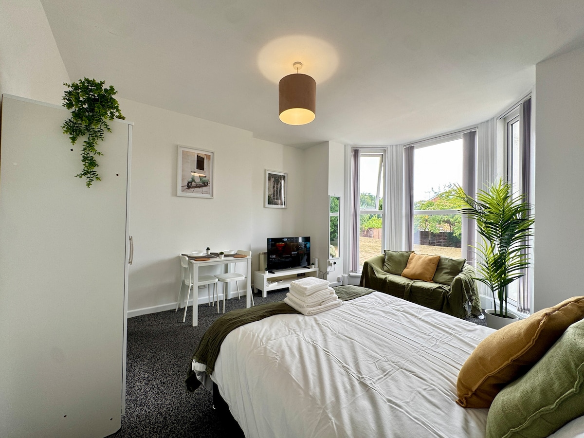 The Garden Room is warmly, welcoming and complete with all essential equipment. It consists of a king-sized bed in the main bedroom with separate bathroom with freestanding bath and separate shower. The bedroom area is open plan with the living area. Brand new fitted kitchen with washing machine, dishwasher and all essential equipment. Located in Kidderminster. 10 minute walk from town. Ideal location for visits to Safari park, Severn Valley railway and local countryside.