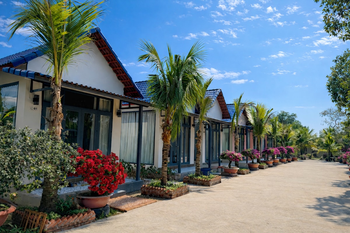 The homestay features 8 bungalows, newly opened in February 2026. Our homestay is conveniently located just 10km from Grand World Phu Quoc, 10km from downtown, perfectly positioned halfway between the downtown and the vibrant northside area. Only 1.5km away, (5 mins drive) you’ll find the beautiful beaches Sunset Bay A brand-new electric bus stop is right in front of the property, just a few steps away. You can explore the island for only $1–2 per ride, and travel directly to the airport.