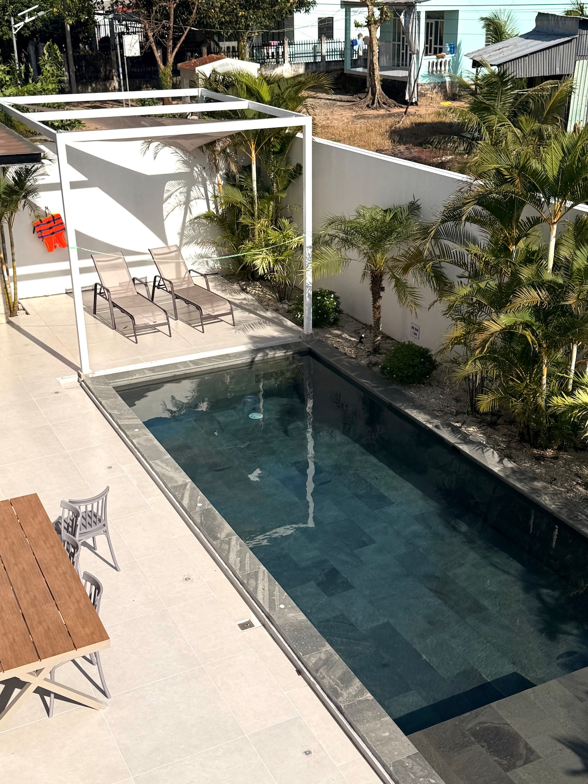 Lee Villa features elegant European-style architecture with an open layout, surrounded by lush greenery and colorful flowers. The front includes a salt-treated swimming pool and a private garage for easy car access. Inside, you’ll find a stylish living room, a fully equipped kitchen and bar, and a bright central area lit by a skylight. The villa offers 2 double bedrooms and 1 twin room. it’s perfect for families, friends, or professionals seeking a quiet and refreshing retreat.