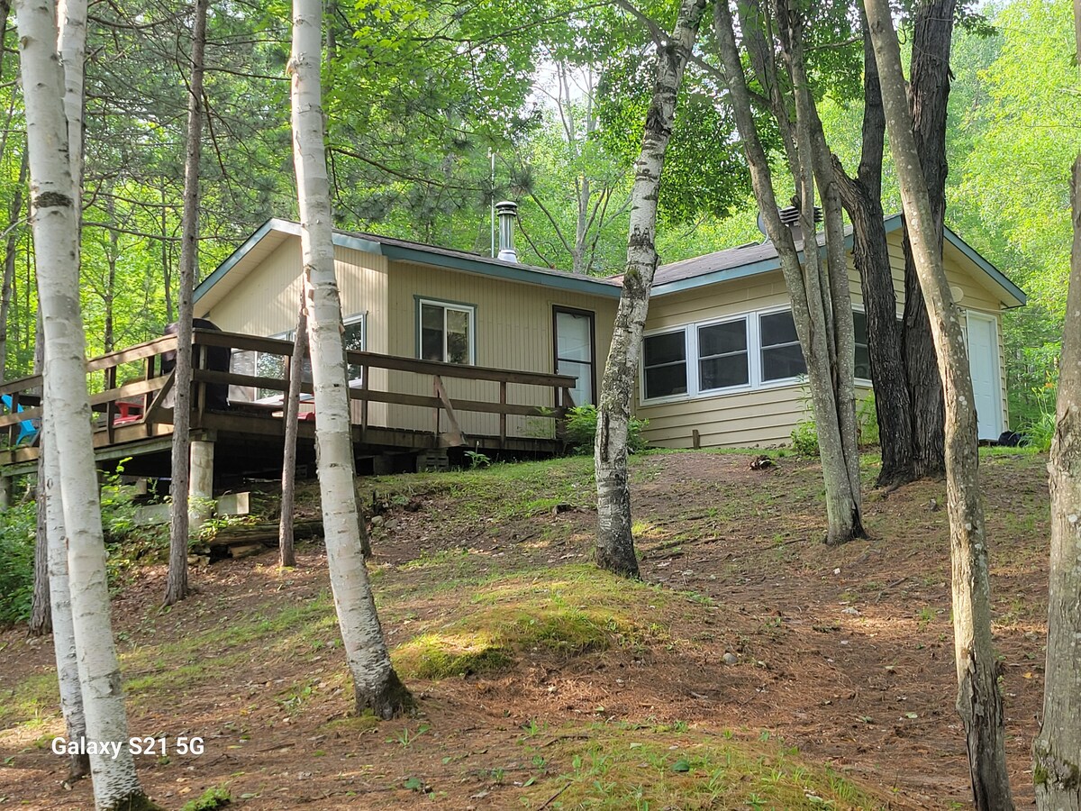 Our little cottage sits nestled in pines overlooking beautiful Kamaniskeg Lake. We are near Algonquin Park. The recent renovations include a tastefully decorated space with the feel of a cozy Canadian cabin.. The beds are excellent. You can enjoy the view and ambience sitting in the screened in porch overlooking a spectacular view or sit lakeside on the patio. The cottage has a fully equipped kitchen and bed and bath linens . Satellite tv as well.