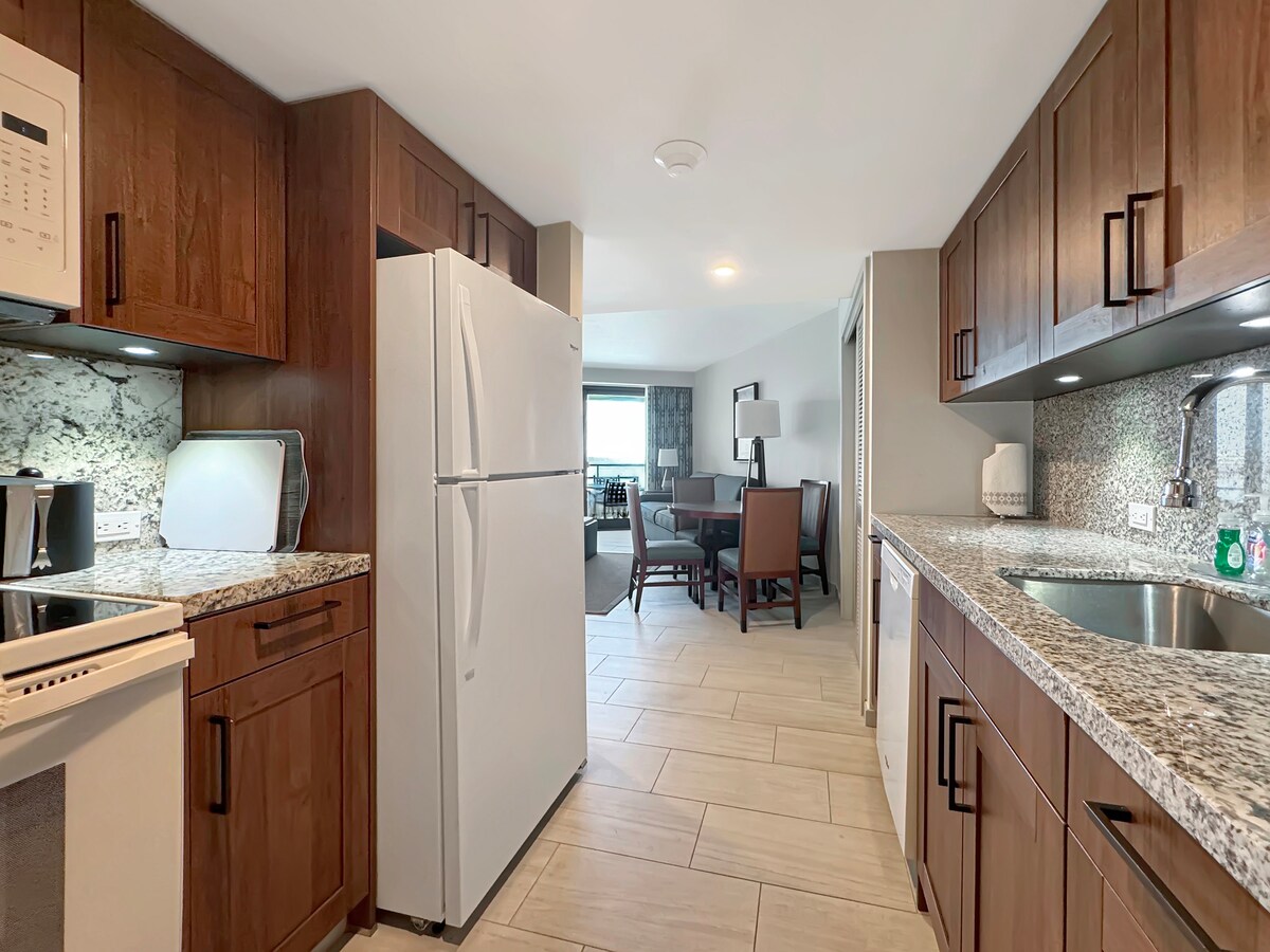 Great for Families!! ONLY feet from the beach! Our ground floor 2-bdrm 2 bath full kitchen step out of your door directly onto the beach, pool, swim up bar and restaurant. Walking distance to outstanding restaurants. Enjoy water sports On-site gym, restaurant free internet laundry facility 24 hour security parking. *Guests are charged $26.20 per day resort fee at The Hilton Royal Palm (pool,beach, gym usage, pool towel changes,and tax are all included resort fee)