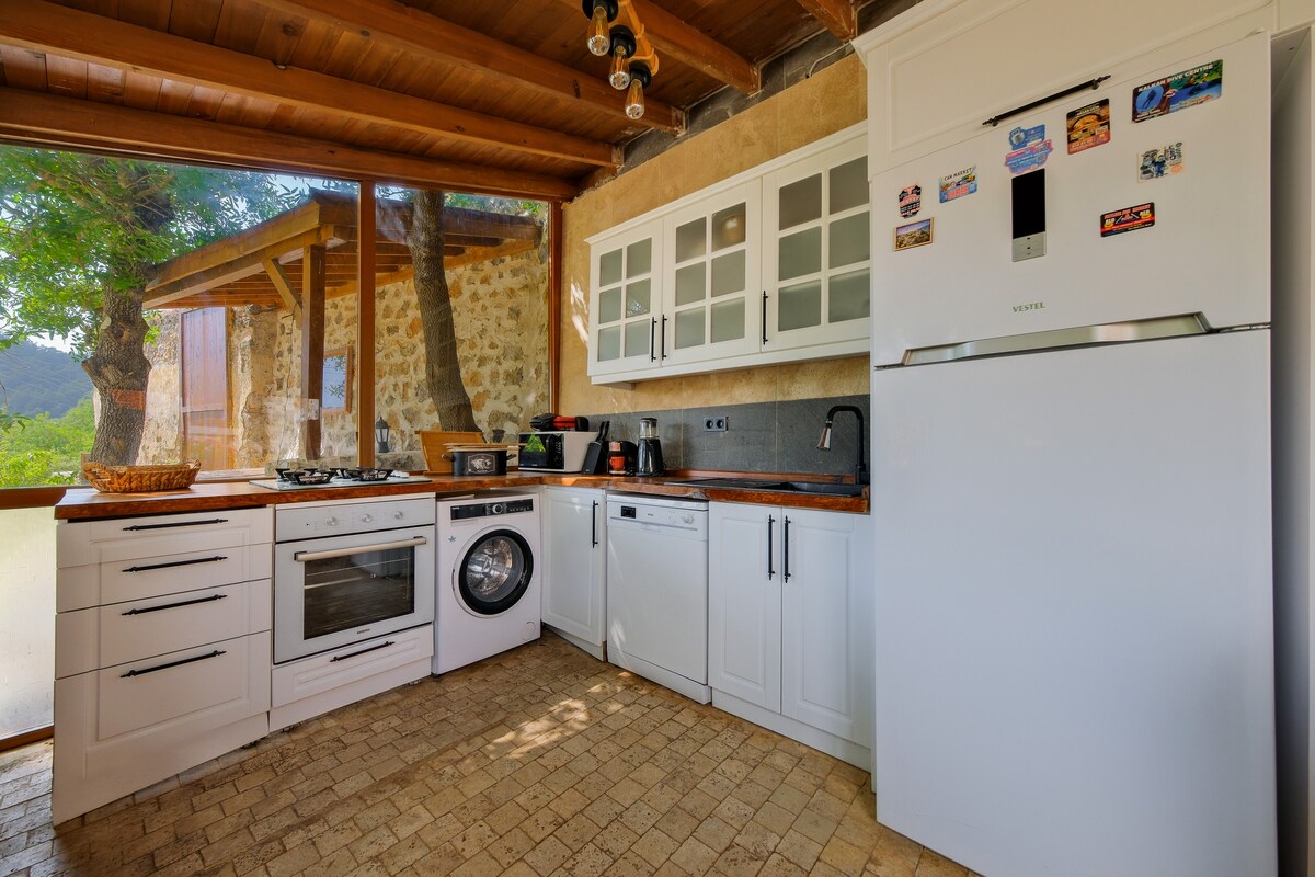 This character 3 bedroom house is surrounded by beautiful countryside. You can see the ghost town from the terraces. It has a stylish, rustic feel and is beautifully finished with classic marble, kilim and natural wooden flooring. Surrounding the house is a stone wall with gated entry, giving peace and privacy. The roof terrace has superb views and the pool is just off the living room. There is a local shop and public transport 5 mins away and private parking.