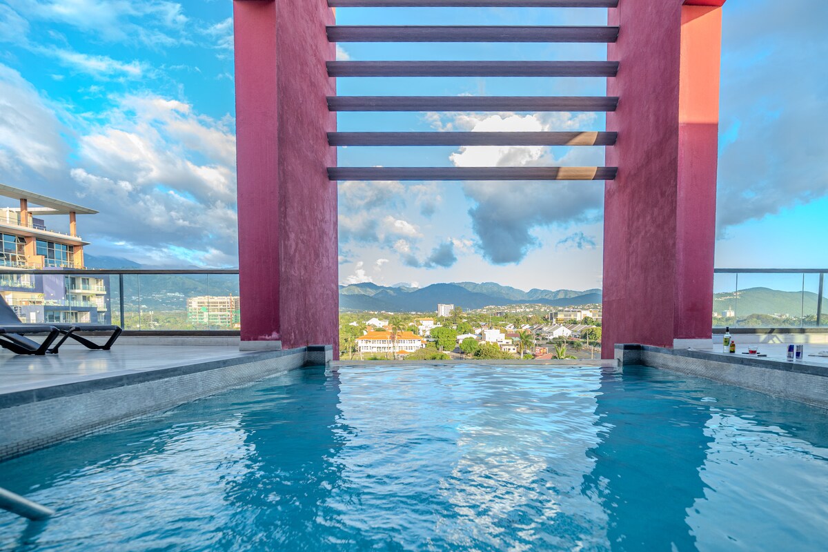 Gated open floor concept penthouse with floor to ceiling windows, large walk-out balcony, roof top gym and entertainment areas provides a breathtaking view of the surrounding mountains, city and Kingston Harbour! Free WiFi, smart TV, full kitchen and laundry provides for convenience while roof top chill out and ground level pool provides much needed relaxation. 5-10 mins drive to Devon House, Bob Marley Museum, Emancipation Park, National Heroes Park, and numerous eateries.