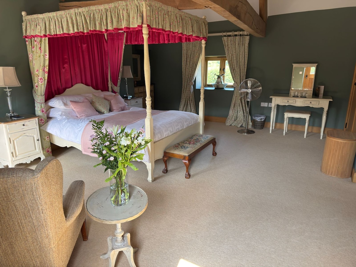 A beautiful newly appointed oak framed studio apartment in the heart of Herefordshire. Within easy reach of Hereford city centre and close to many other popular places ie Hay-on-Wye, the Black Mountains, the Golden Valley, the Showgrounds of the Three Counties and the Royal Welsh to name but a few! This open plan bed/sitting/kitchen space gives the feeling of calm and relaxation. A separate shower/toilet room also. This is situated on a working farm.