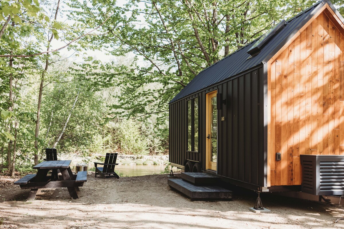 This charming and elegant little cabin will transport you into nature. The feeling of camping outdoors with indoor amenities. Part of the brand-new campsite, Trailside Stays that is conveniently located alongside the ski and mountain bike trails at Green Woodlands. This tiny house features 1 high quality queen-size bed, linens, kitchenette, large picture windows, bathroom with shower, heating and A/C, outdoor seating and grill top fire pit. Don't see your dates available? Check the other cabins!