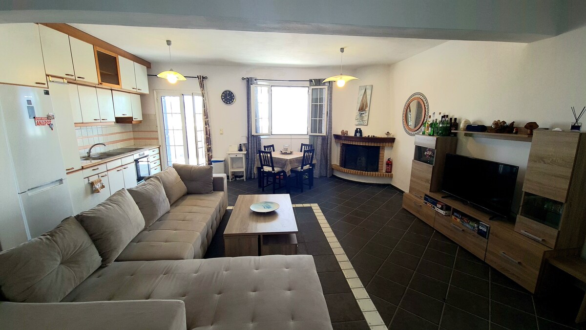 It's a cozy vacation home that can comfortably accommodate up to 7 people. The house has a panoramic view over the infinite blue of the Aegean Sea. Our home is ideally located if you are seeking to relax and discover the island of Andros. It’s located in a peaceful spot in the area of Agios Petros that is only 6 minutes away from some of the most beautiful beaches and the port of Gavrio. We are always glad to assist our guests so that they can explore the little gems of the island.