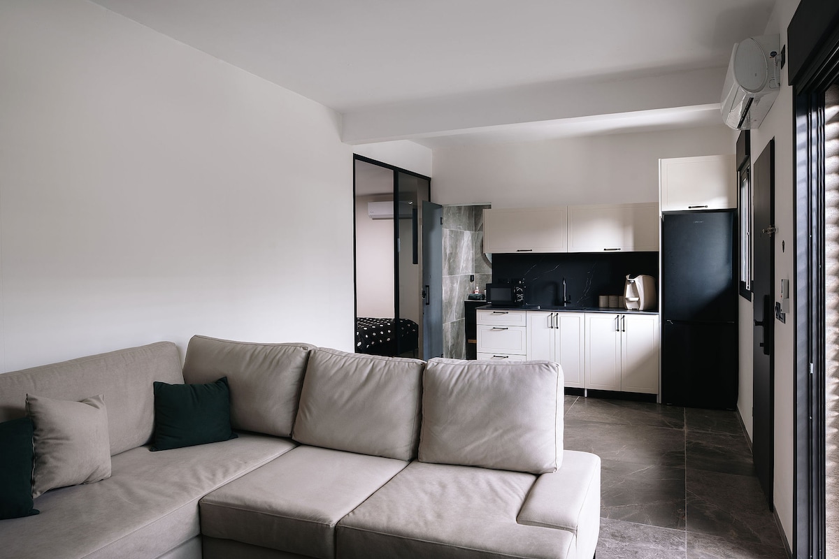 Welcome to 'Sunset at Sea' - a luxurious and spectacular renovated vacation apartment located right on the beachfront but in an old residential neighborhood. A new world of recreation awaits you behind the apartment door. Due to the apartment's unbeatable location, you can enjoy a direct view of the Mediterranean Sea and a private exit from the apartment directly to the beach! Imagine yourself sitting in a luxurious spa Jacuzzi with a glass of wine and seeing the sunset at sea and the stunning view of the sea. This is definitely a unique and romantic experience. We put a lot of thought into the design and the little details so you can enjoy the perfect vacation. The accommodation is suitable for couples.