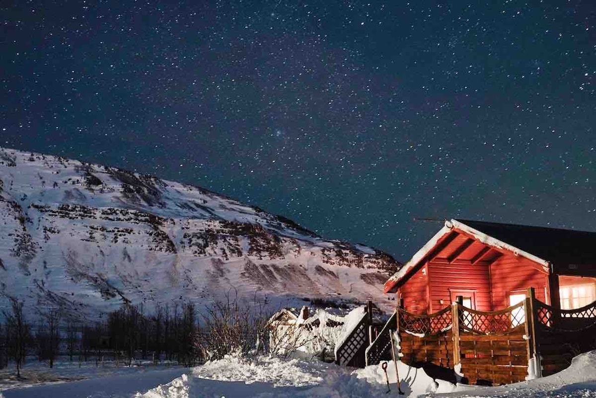 This beautiful cabin is only 40 min from Reykjavík for 4 people in two queen size beds (one bedroom and a loft), one more person can sleep on a mattress if needed. Hot tub, gas grill, wifi, Netflix, bathroom with shower and fireplace. Well equipped kitchen with dishwasher. The cabin is close to Hvalfjörður, Hvammsvík Hot springs, Glymur (Iceland's tallest waterfall), Thingvellir (30 min), Golden Circle and Snæfellsnes (170 km). Great opportunity to see the Northern lights if weather allows.