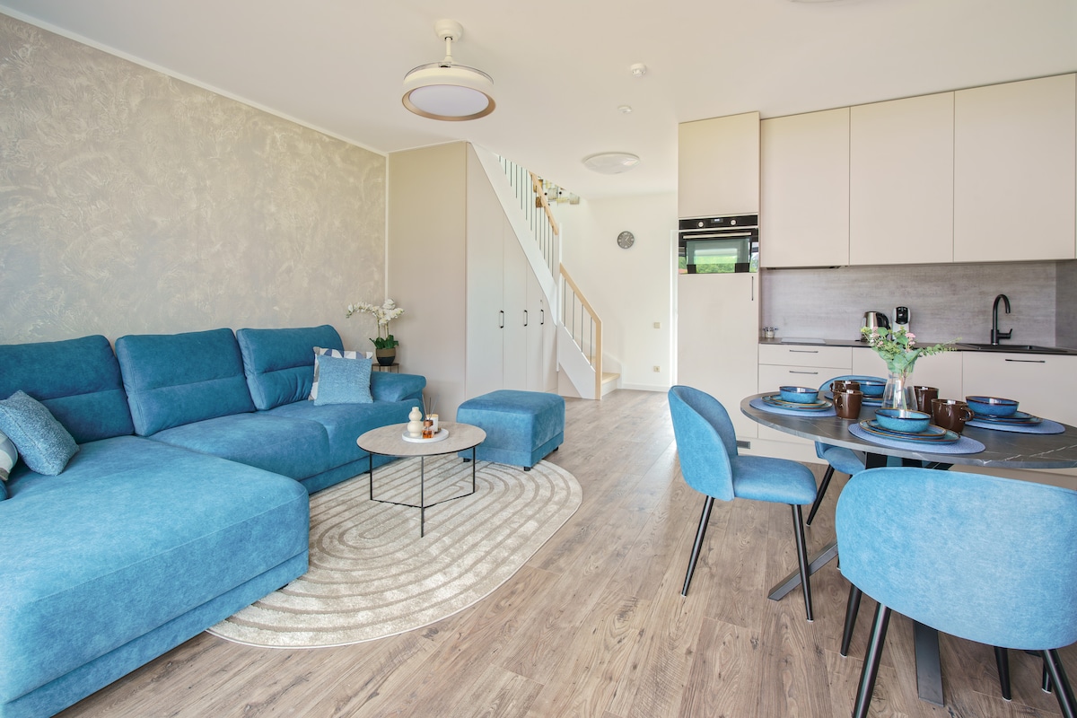 Home-like apartment in a house built in 2021 with a terrace - only steps away from the beach. A relaxing and quiet place with a terrace and a private parking, just 3 minutes walking from the sandy beach in Kunigiškiai. We are a great choice for couples and small families to explore the Lithuanian seaside or a perfect spot for relaxing holiday by the beach. Only two apartments in the building.