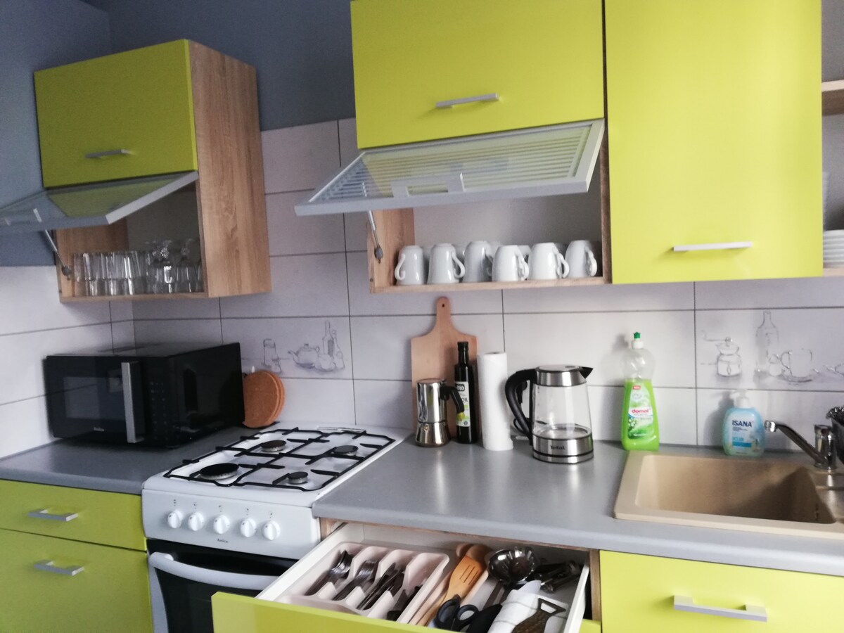 ♥ Relax after hiking in the Owl Mountains in a comfortable, modern 31m2 room divided into 2 bedrooms with a seating area. You will have a comfortable king size bed, a sofa bed and a large double bed in the second bedroom. A perfect place for a family of 2+4 or 2 couples +2. ♥ Nowa Ruda is located 15 minutes by car to the Srebrna Góra Fortress, Owl Mountains, 20 minutes to the Stołowe Mountains and many unique monuments around Kłodzko. Close to many ski slopes.