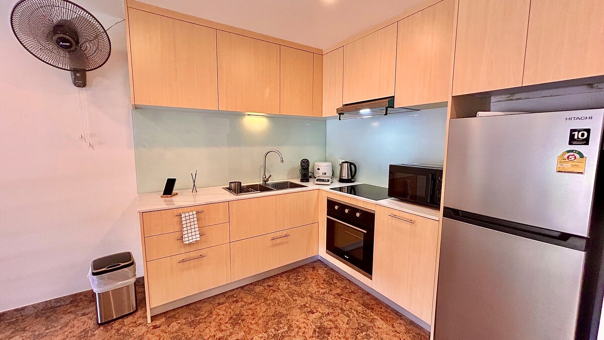 Experience unparalleled comfort at this exceptional Koh Samui condominium, ideally located just steps from the beach. Nestled on the tranquil 4th floor, this residence boasts high ceilings, stunning views of the pool and sea, and a spacious living area crafted with premium, durable amenities. Enjoy a modern 3-meter kitchen equipped with a stovetop, hot water, and a luxurious rain shower, ensuring a perfect blend of style and functionality for your stay.
