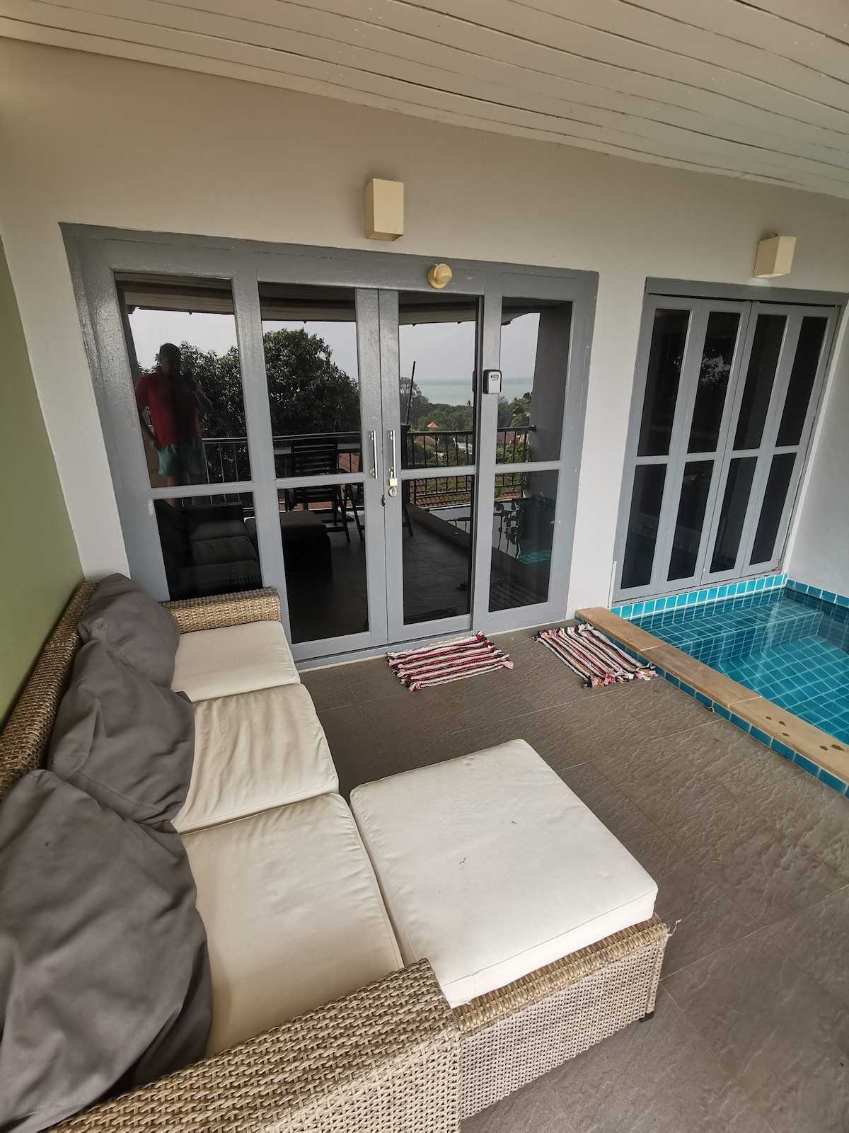 Panoramic sea & sunset views from every room. Private 12m infinity pool. Walk to private beach in 5 min. Gated luxury estate in Thongson Bay, Samui. 4 bedrooms ·3.5 baths ·up to 8 guests ★90' home cinema ★3 sea-view workspaces with monitors — ideal for remote work ★Treadmill, massage chair, trampoline ★Full kitchen with dishwasher, oven & coffee machine ★Outdoor shower ★Washer-dryer ·Gas BBQ ★Pool & garden maintenance included ★Beachfront estate pool + private beach access ★Free parking