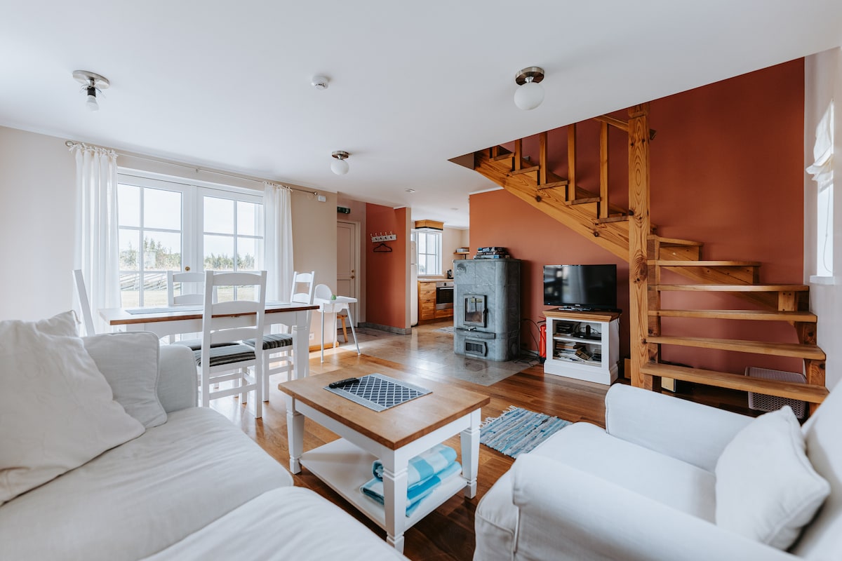 Cozy, spacious and bright house (Kordoni holiday home) is truly private and perfect for nature lovers, around is the sea. It is situated in Muratsi village on Vani peninsula. The place is close to Kuressaare, about 8km from city center. In the house there is everything you may need for carefree vacation (kitchen with all the necessary equipment). Wood-heated sauna with view to sea and large terrace for relaxing on second floor. Fireplace on living room.There are 2 bicycles for you, to use.