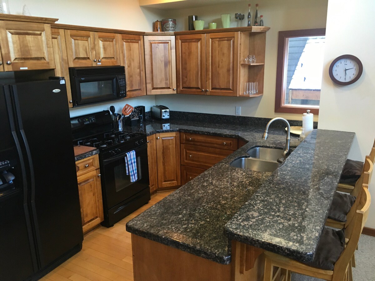 Beautiful, clean & bright w/ ample natural light, sleeps 8 people, perfect for 2 families with children. Short ski down to the Snow Ghost & Ridge Rockets chairlifts. Family-oriented building for a quiet, peaceful stay. 2 parking spots directly outside, a private hot tub with mountain views, a BBQ, Xbox 360 with a game library, a DVD player with a large movie selection, Roku for Netflix, Disney+, Prime, board & card games, Telus cable tv & WiFi + a Sonos audio system.