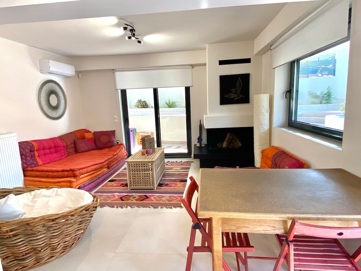 Minimal σουίτα, πρόσφατα ανακαινισμένη 10 λεπτά από αεροδρόμιο. Ανεξάρτητη με ιδιωτικό μπάνιο, βεράντα, κήπο και εκπληκτική θέα.Ο κομψός σχεδιασμός της και το μοντέρνο στυλ θα σας προσφέρουν μια αξέχαστη εμπειρία διαμονής. Βρίσκεται σε λόφο, πολύ κοντά σε: - Metropolitan Expo (10 λεπτά), - λιμάνι της Ραφήνας (15 λεπτά), - Smart Park - Ζωολογικό πάρκο - Στάση Μετρό Ιδανικό για διακοπές, shopping, επαγγελματικά ταξίδια ή άτομα που θέλουν να εργαστούν ψηφιακά με γρήγορο και δωρεάν wifi.