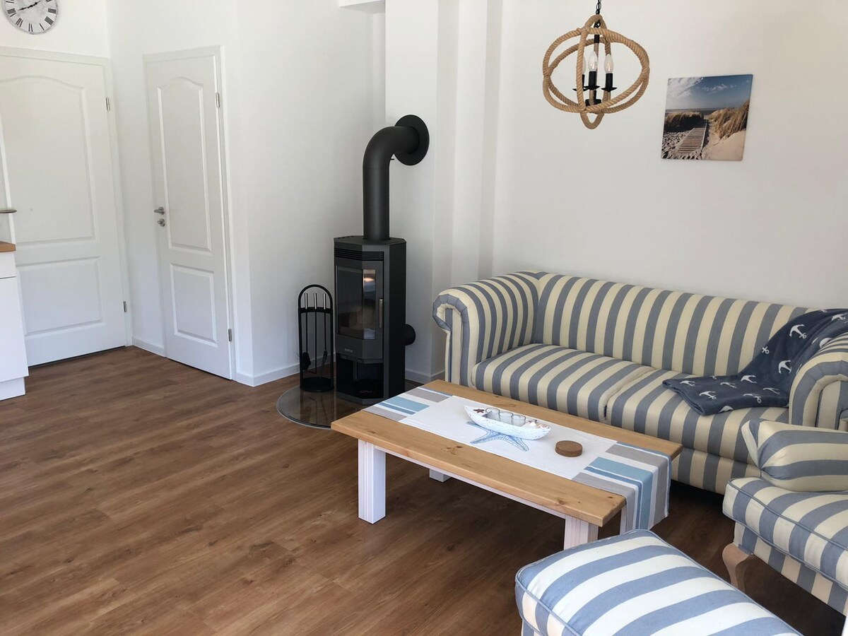 Welcome to the sunny island of Usedom! Our bright 80 sqm apartment "Traumzeit" (Dream Time), only 5.5 km from the popular Kaiserbäder, is located on the first floor of our house and is flooded with light thanks to the floor-to-ceiling windows and is a real vacation idyll. Up to six people can vacation in the beautiful Ulrichshorst, within walking distance of Lake Wolgast with a swimming area and restaurant as well as a forest, which invites you to take a walk at any time.