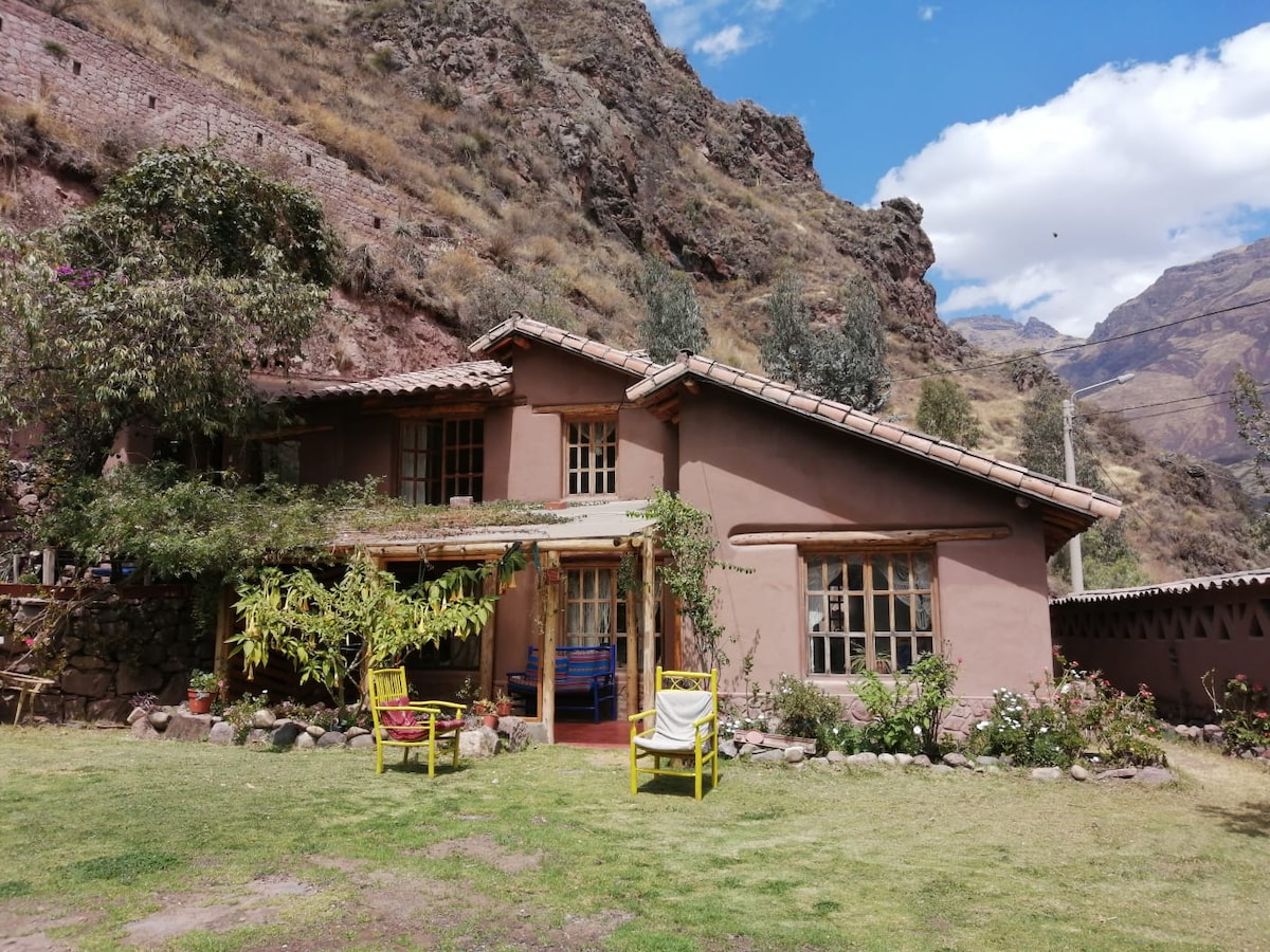Beautiful private house in Lamay, Sacred Valley of the Incas. Surrounded by magical mountains, trees, birds, and organic chakra. Lamay is a typical Andean village, very quiet and friendly, 10 minutes from the famous Pisaq market and its archaeological remains. The house is surrounded by gardens and is very spacious and bright, made with local materials. This is a family project, the bungalow is within our property and we will all be happy to assist you with whatever you need.