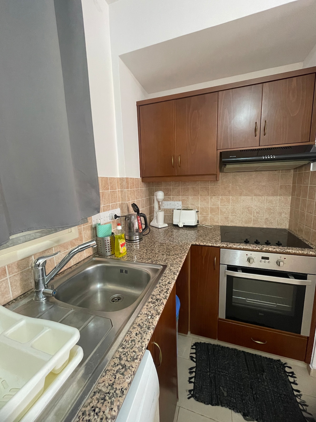 A one bedroom first floor apartment with a poolside balcony and a very private covered terrace situated just a few minutes walk to the seafront and main beach in kato paphos. The apartment is in a small gated complex with a large variety of restaurants, tavernas, bars and shops within a stones throw away. From the apartment the harbour area is an easy 15-20 minute stroll away either along the picturesque coastal path or Poseidonos Avenue passing shops, restaurants and tavernas along the way.