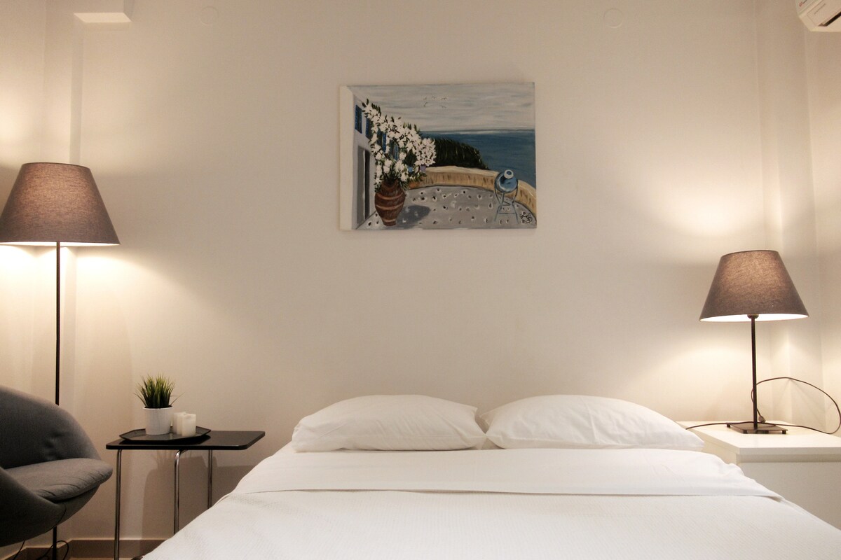 -Located at the very center of Thessaloniki,at Mitropoleos Street,where everything you need is 2 minutes away by foot. -Easy access to all major means of transportation (taxi, bus) -Inverter A/C unit for heat/cold -Hotel style bathroom -High quality mattress,pillows and sheets -Iron/ironing board -Room darkening curtains and blinds -Even though it is located in the heart of the city,the place is adequately soundproofed from external noises -Perfect for couples,lone travelers,friends and families