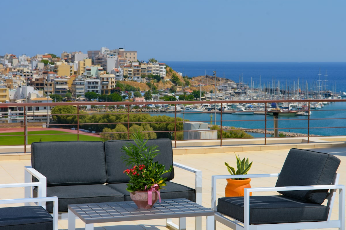 This beautiful modern apartment, literally just 3 minutes North from the centre of Elounda, is located right on the watersedge of the bay of Mirabello with it's crystal blue waters, and even has a view of the island of Spinalonga, the famous Venetian fortress turned leper settlement. Housing up to 3 people, it is both ideal for a family that wants a relaxing swimming holiday as well as people that want to enjoy the nightlife of Elounda.