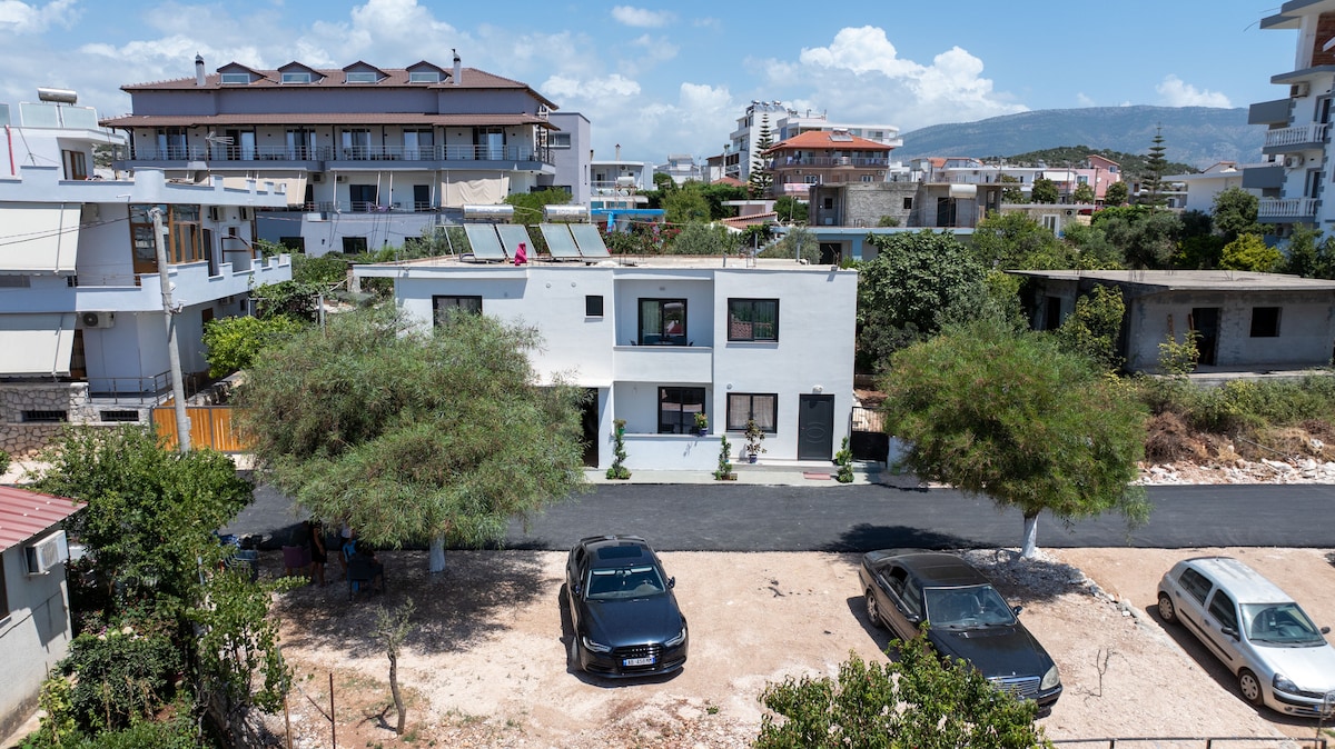 Zupełnie nowy, stylowo urządzony apartament położony jest na zielonym wzgórzu, w cichej okolicy– z dala od miejskiego zgiełku, a jednocześnie blisko wszystkich atrakcji Sarandy. Z balkonu rozpościera się zapierający dech w piersiach widok na morze i miasto. Codziennie możesz podziwiać magiczne zachody słońca, nie wychodząc z mieszkania. Apartament składa się z dwóch komfortowych pokoi i został wykończony z najwyższą dbałością o detale. Do dyspozycji gości jest basen przynależący do budynku.