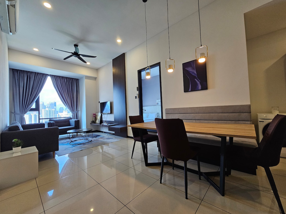 Why stay at The Elegance Suite at Lucentia Residence - the best views of KL - beautifully decorated with a fun spirit - centrally located - near public trans - fast wifi - 2 TVs with Netflix, Apple TV, Prime Video - 2 gorgeous pools - family friendly with baby crib & high chair - gym, pool table, BBQ pits, piano - 1 parking - sleeps 4, max 5 - LalaPort Shopping Mall & the WOW entertainment street are attached - grocery, drug store, and many restaurants are attached - movie theatre GSC