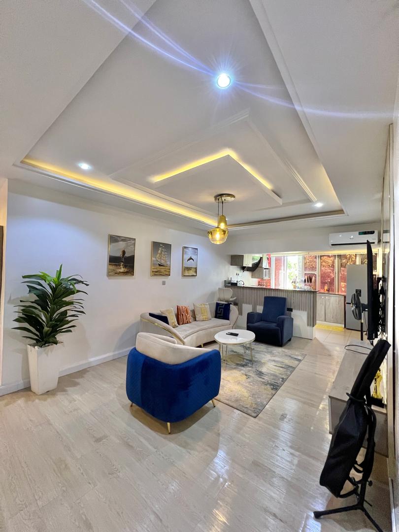 Whether you're visiting for business or leisure, this one-bedroom short-term rental, offers a sanctuary with amenities that actually feels like home. The property is located within a secured gated estate. It has its own fence, gate and perimeter CCTV, providing you complete peace of mind. Water and power are 24/7 with inverter and generator backup. Cleaning services offer convenience tailored to your schedule. You will be happy with the luxury and comfort available in this unique space.