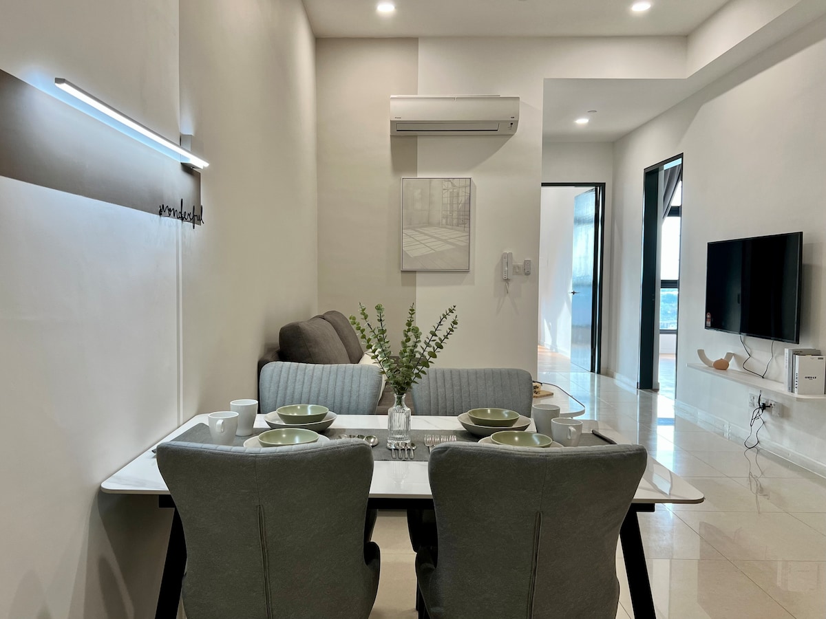 Luxurious spacious 3-Bedrooms unit with Bathtub! Premium quality King & Queen size Beds that guarantee good sleep here with amazing Midvalley Southkey Mall view! Main Highlight! -Private Bathtub -65" Smart TV with YouTube and Netflix apps -Pool Table -Retro Game Console -Drinking water Dispenser Surround with shopping mall & wide range of local tasty food - 2 mins drive to Midvalley Southkey JB - 5 mins to KSL City Mall - 8 mins to City Square Mall & Custom JB