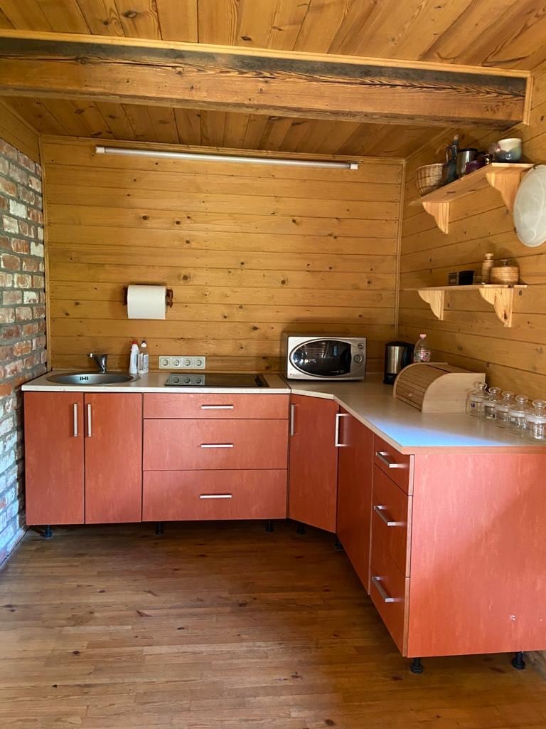 We offer a year-round wooden guest house, located in the Elbląg Upland Landscape Park. We spent a lot of time in it, enjoying the peace and the magic of the forest. We designed it for a comfortable stay for 2 people. We offer a bedroom, a living room with a kitchen and a covered terrace. It is a paradise for introverts or an ideal place for remote work in the bosom of nature. Let this place in the forest become your private sanctuary, a place where time slows down...