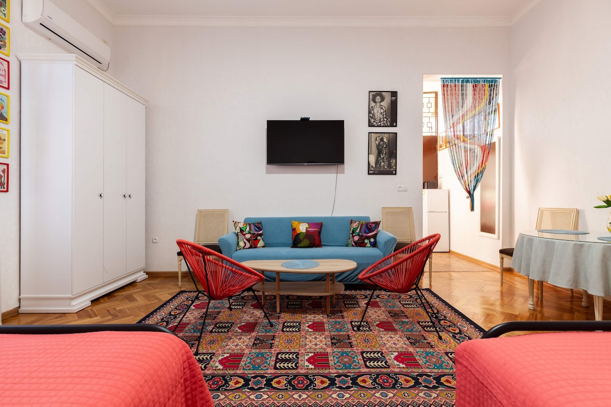 This unique space is located in the very heart of Old Kutaisi, just a few steps from the city center. Its modern design and rich list of amenities will meet all your needs: 2 comfortable queen-size beds, fresh towels and bed linens, a cozy sofa with pillows, a fully equipped kitchen for self-catering, a smart TV, high-speed Wi-Fi, air conditioning, a washing machine, and complimentary coffee and tea. So relax, unwind and make yourself at home🏠 🚭 No smoking indoors 🐾 No pets allowed