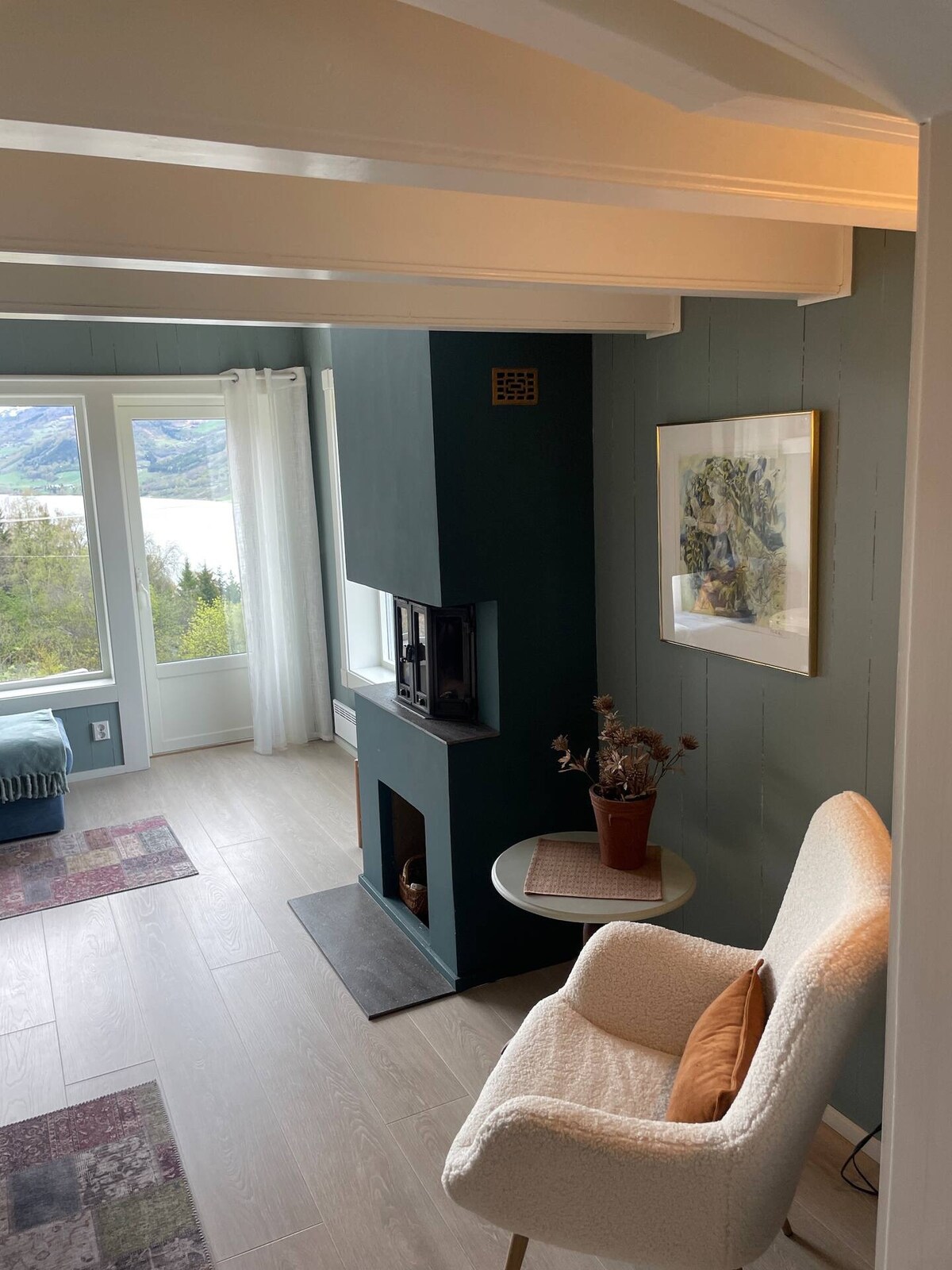In the middle of our merino sheep farm stands this characterful house. It features a cozy studio with a fireplace. The house is at 650 meters altitude in the mountains and has a beautiful view of the valley and the village of Kvam. You can enjoy hiking from here to a small waterfall, visit Rondane NP or help feed our merino sheep. This location is very suitable for guests with children. Guest from the studio can use the shared bathroom and toilet in our community house.