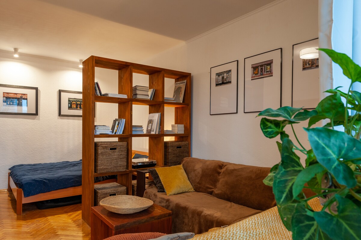 Стильная и уютная квартира с балконом, который выходит на тихий внутренний двор. В квартире новая мебель, двуспальная кровать, диван для отдыха, обеденный стол и кухня укомплектована всей необходимой техникой и посудой для приготовления пищи. Стильная ванная комната оборудована современной душевой кабиной. Два плазменных телевизора и высокоскоростной интернет для работы и развлечений.