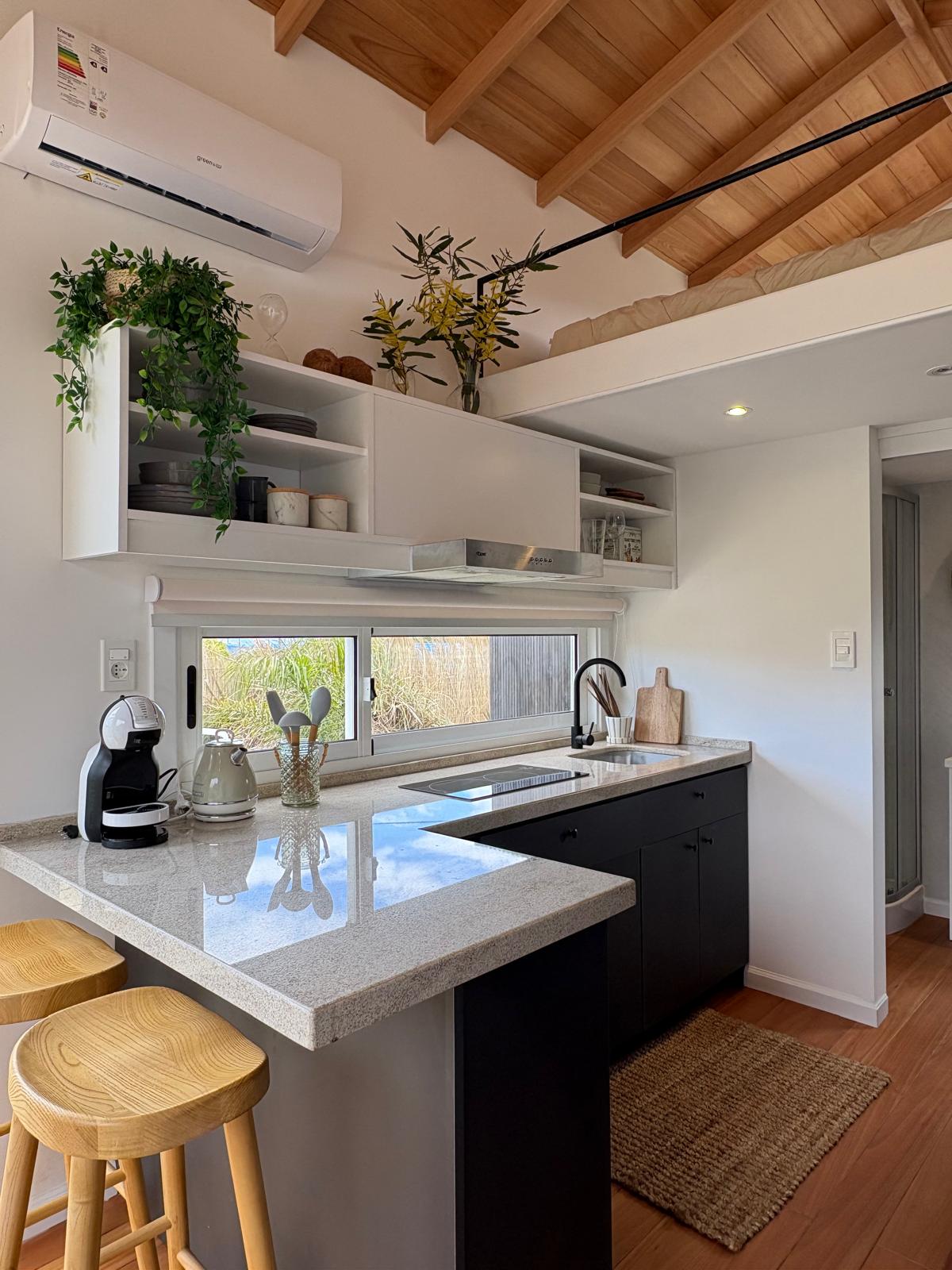 New and modern mini-house in the middle of Barra, 100 meters from the sea. Ideal for couples and to do "everything on foot"! It is located 50 meters from OH La Barra Shopping, 100 meters from Tienda Inglesa and the shopping area where the best bars and restaurants are located. Located on a raised and quiet street, it has a brazier, outdoor chairs and a hammock. A unique space to relax and unwind. 100 meters from Playa Bonita, 200 meters from Playa de los Cangrejos and 300 meters from Playa Montoya