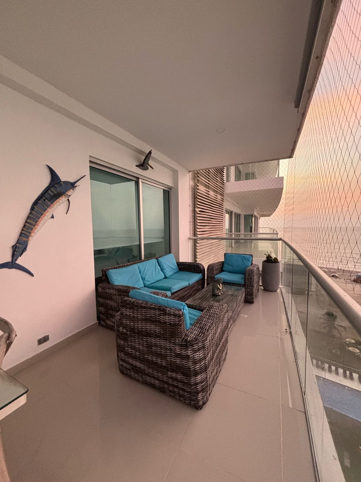 Discover elevated luxury in our 34th-Floor Ocean View Suite, The ICONZ Sky Residence, located in Cartagena's safest and most upscale area, steps from the beach and 5 minutes to Walled City Wake up above Cartagena’s skyline with views via floor to ceiling windows & lounge on a huge comfortable balcony. You'll LOVE: ✨Modern design & A/C throughout ✨Amaizing Pool, Gym, Sauna, 24-Hour Security ✨Maid & Concierge ✨Premium mattress, linens & pillows ✨24-hour Self Check-in with Smart Lock ✨Smart TVs