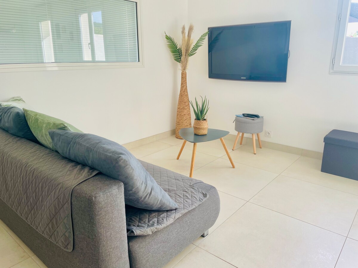 In peaceful neighborhood, accommodation of 30m2 (air-conditioned) with private garden of 40m2. Beautiful services. This home with zen and neat decor is a real haven of peace. With its exterior planted with exotic plants, this quiet and peaceful place will bring you well-being and serenity. Guests can also enjoy a relaxing moment by the pool. To stay in the atmosphere, on site and with a supplement, you can benefit from a wellness massage.