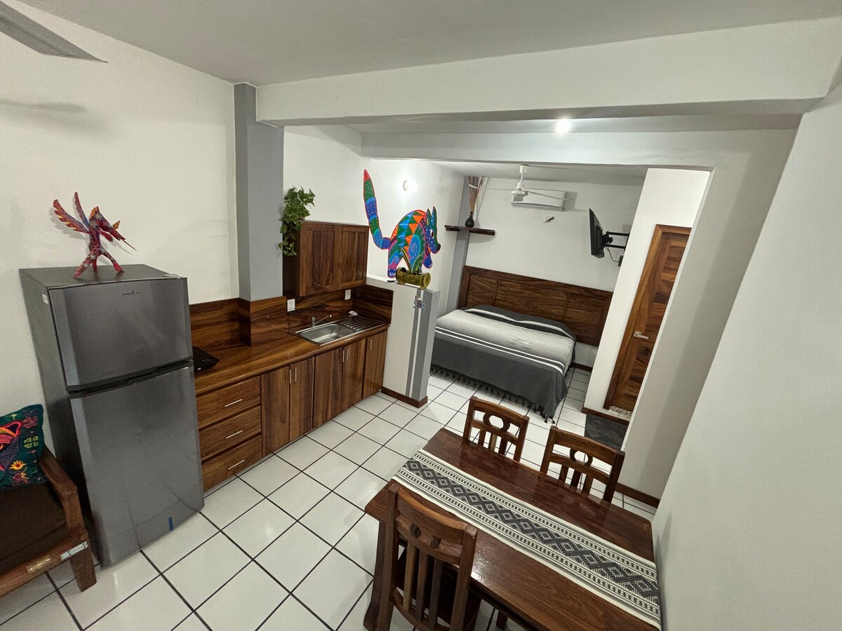Your home in Huatulco! Feel at home in this beautiful Loft just a few steps from the Main Bay of Huatulco, ideal for swimming in its crystal clear waters and enjoying with the family. You will have at your disposal the services of air conditioning, fans, TV, WiFi, stove, refrigerator, dining table, kitchen utensils, private bathroom and three comfortable beds so that you can enjoy a unique stay. We respect the measures of healthy distance and cleanliness of the spaces for the guests.