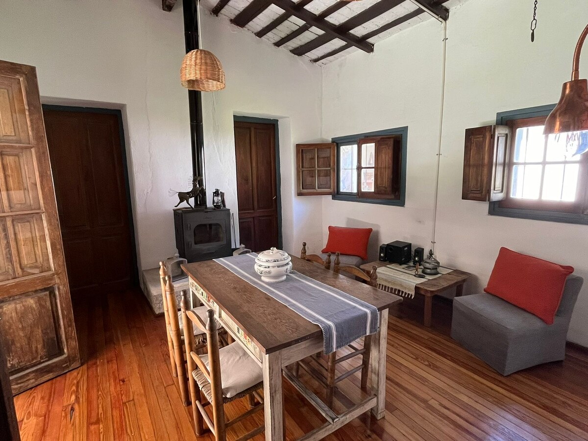 Entire family house, spacious and comfortable, facing the river, in a large garden full of fruit trees, in San Esteban, a beautiful and quiet town. Easy access by car or bus, ten km from Capilla (Cerro Uritorco) and La Cumbre. Grocery store and bus stop very close by. Three bedrooms, fully equipped kitchen, hall, laundry, barbecue, garage, Wi-Fi. Cool in summer and warm in winter. We are close for whatever you need! Your questions are not a bother!