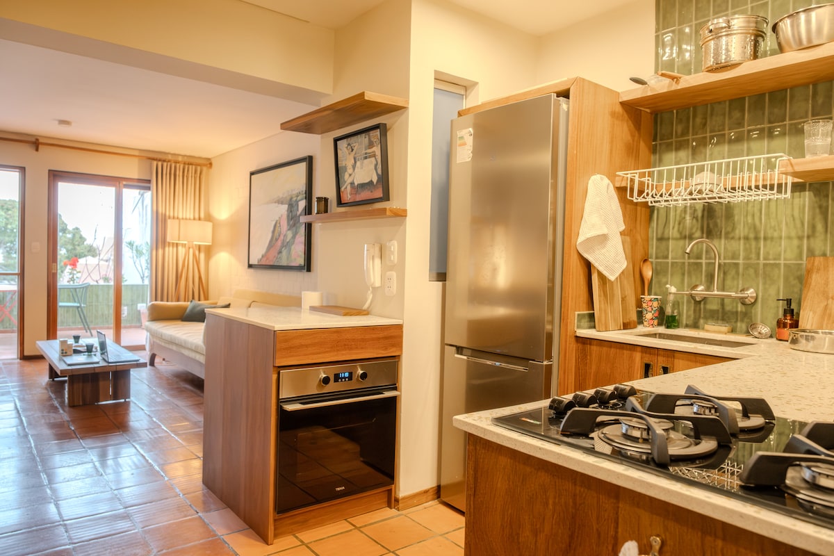 Loft-style mini-apartment with ocean views. Perfect for spending an unforgettable time as a couple. It has a king-size bed, a sofa bed, a smart TV, Wi-Fi, a gas stove, kitchenware, a living room, a mini-dining room, a bathroom with a hot water heater, and a washing machine. In addition, you can take advantage of fabulous nights listening to the sound of the sea and enjoying a beautiful view. The beach is small, almost private. The pool is a common area of the house, available from 10 am to 6 pm. I DO NOT PROVIDE TOWELS OR PERSONAL HYGIENE ITEMS.