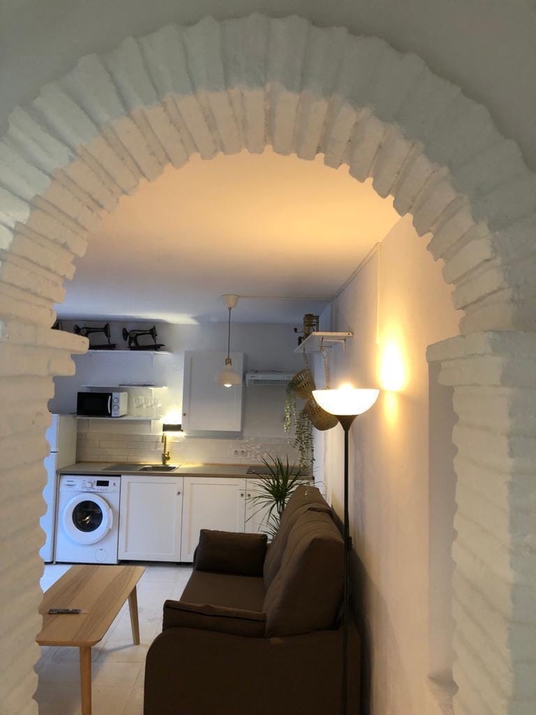 Enjoy the simplicity of this quiet accommodation in the heart of Vejer, with a public parking lot two minutes from the house Newly renovated, it has everything you need, with ample kitchen and household utensils. It has a kitchen/dining room in which there is a good sofa bed, laundry, toilet and bedroom with a double bed Located in the Amaro alley in a typical Andalusian courtyard with chairs and table to enjoy it