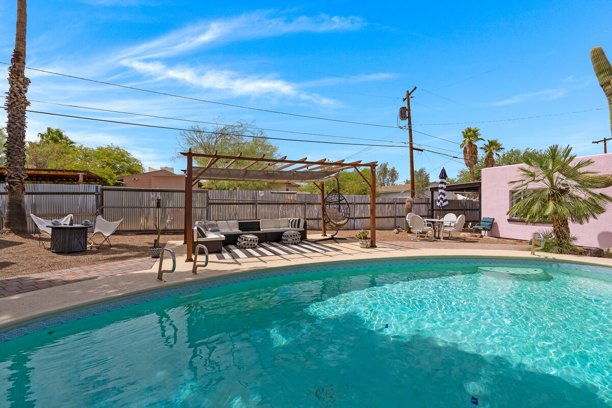 Welcome to El Flamenco Rosa Casita!! Located in the highly desired centrally located and historic neighborhood, Sam Hughes, this chic casita, plus the backyard in its entirety will be all yours. The Sam Hughes neighborhood is quite walkable. is walking distance to many bars, restaurants, pubs, cafes and the UofA. Attend UofA sports without the need for parking! We are also just a short Uber away from downtown Tucson. It is perfected situated in the heart of central Tucson!