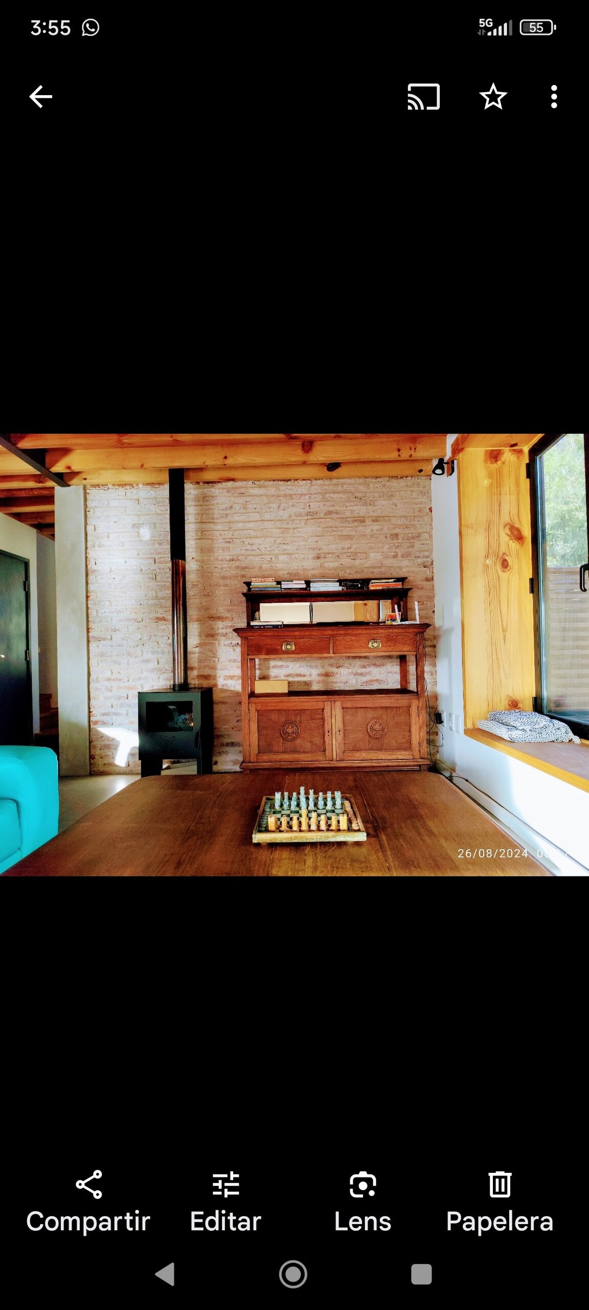 House in San Sebastián de La Pedrera, 2 blocks from the beach and 10 blocks from La Pedrera's main street. Located in a quiet and wooded area. On the ground floor there is a bathroom, it has two bedrooms, one with 1 single bed and a bunk bed, and the second on the upper floor en suite with toilet and double bed. It has a kitchen, refrigerator, living room, smart TV, wifi, wood stove, and a covered grill. Bedding is not included. They are two identical houses that share a wall, large groups can rent both.