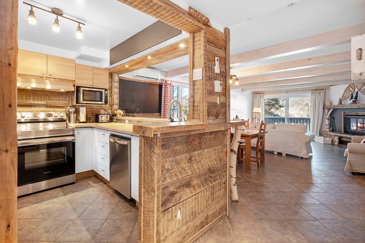 Come enjoy our modern condo with stunning views of the lake and Mont-Tremblant. You can enjoy the location of our condo all year around as you are less than 5 minutes from the famous Tremblant pedestrian village, the ski slopes and everything Tremblant has to offer. You can also just sit back, start a fire and take in the breathtaking views this condo has to offer. • Fully stocked kitchen • Perfect for your ski , bike, golf, hiking vacation! • Keurig coffee machine • Smart TV • High-speed WiFi